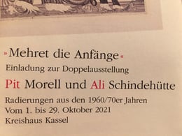 Pit Morell und Ali Schindehütte mit Radierungen aus den 60er und 70er Jahren im Kreishaus Kassel. Vernissage am 30. September '21 um 18 Uhr.